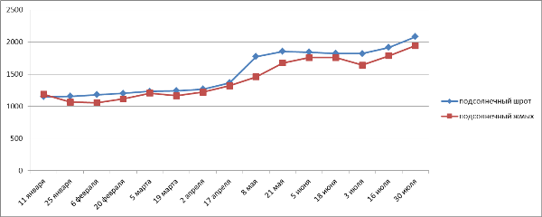 Цена на подсолнечный жмых выросла на 8,8% до 1 943,6 грн/т
