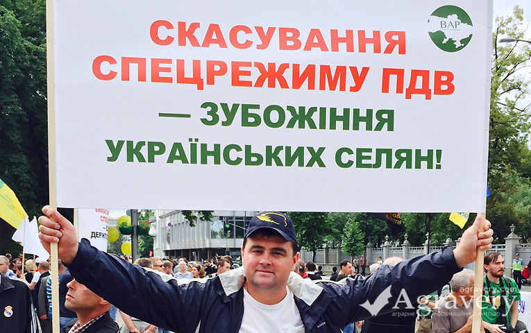 «Несмотря на то, что 30 июня 2015 года под давлением аграриев норма об отмене спецрежима НДС с 1 января 2016 была устранена из проекта закона № 2173а, уже сегодня аналогичный проект должен рассматриваться в парламенте», — заявляют представители Всеукраинской аграрной рады.