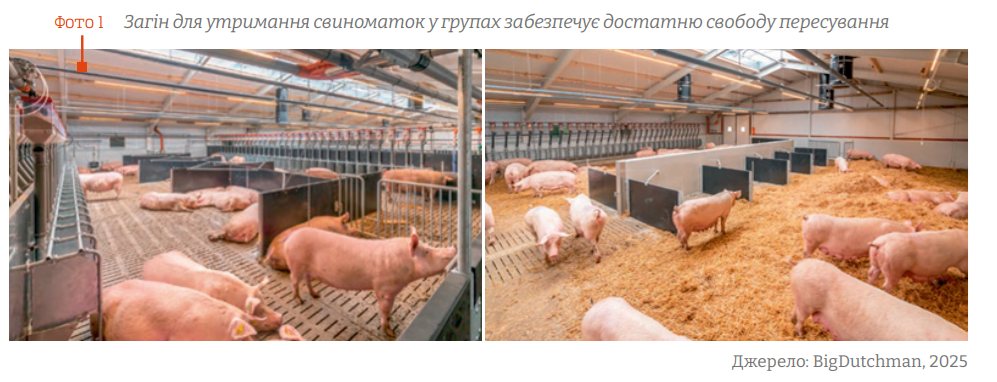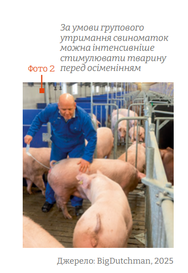 Утримання холостих свиноматок та осіменіння є відправною точкою всього виробничого циклу. Правильна організація цього етапу суттєво впливає на подальшу продуктивність стада. Сучасні вимоги передбачають достатнє природне освітлення, мінімізацію агресії між тваринами і забезпечення індивідуального доступу до корму за умови одночасного збереження свободи пересування (фото 1).