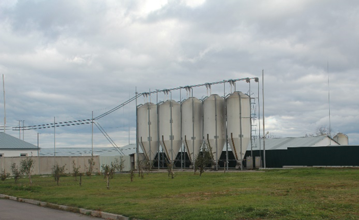 Кормят свиней исключительно гранулированными кормами. Комбикорм покупают, ведь в обработке небольшое количество земли. И племенных и товарных свиней кормят одинаково. Среди своих мощностей имеют систему поставки корма, которая позволяет не допускать кормовозы на территорию фермы. Для этого за пределами хозяйства построили два блока кормовместилищ в больших силосах (каждый на 120 т), содержания которых хватает на 15-18 дней кормления животных. Из них корма системой поставляются в бункеры возле производственных помещений в «чистую зону», а оттуда — в кормушки.