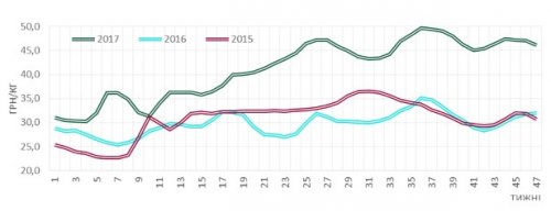 У третій декаді листопада зсув цінового діапазону продовжився. Так, мінімальну цінову позначку — 45 грн/кг — переважно фіксують на Сході країни. Верхня межа діапазону опустилася до рівня 47 грн/кг зустрічається у центральних та західних регіонах. Тож середня ціна свиней забійних кондицій передостаннього тижня осені на 2% поступається її попередньому рівню.