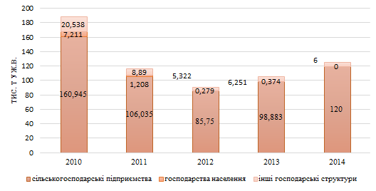 Динаміка закупівлі свинини переробними підприємствами в розрізі категорій господарств за 2010-2014 рр.